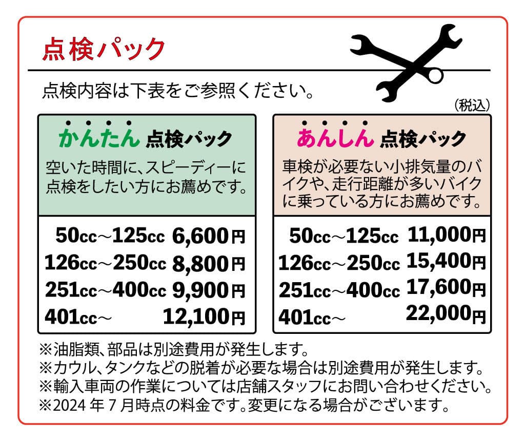 そんな方達の為に4ing Custom Pro Shopでは2種類の点検パックをご用意しております。